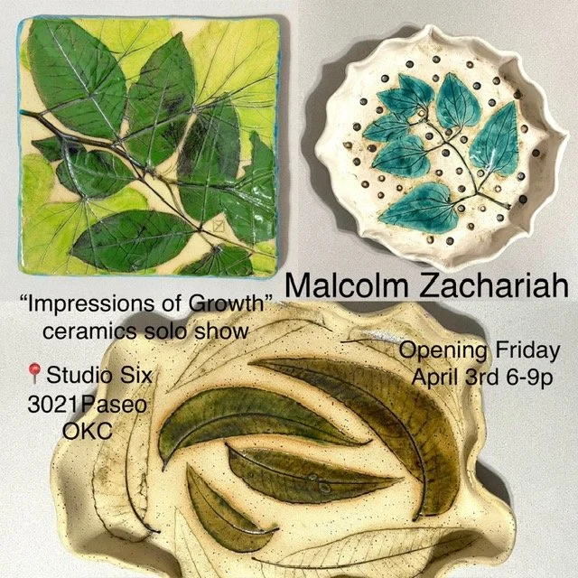 April 2026 art shows: I will have a solo show “Impressions of Growth” featuring ceramic leaf dishes at Studio Six in the Paseo Arts District of Oklahoma City. The opening will be April 3 during the first Paseo First Friday art walk (6-9p). I will also have two watercolor paintings at In Your Eye Gallery for a show called “Untamed”, organized by my friend Theresa Hultberg. Both shows will be up at least till April 25.